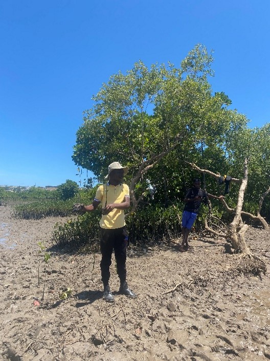 Mbaarak and his majority-female team gave us a very warm welcome, teaching us about the different varieties of mangroves planted at the site and giving us the opportunity to get involved in planting.