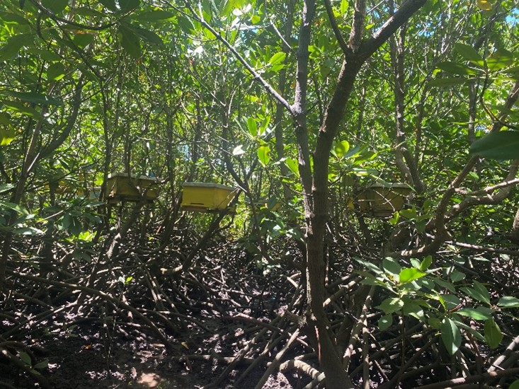 Beyond planting mangroves, the local team organises beach clean-ups, keeps bees, farms fish, and raises awareness locally on environmental issues.